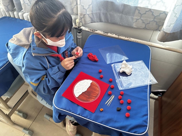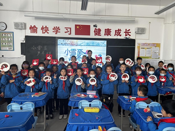 分享课上,讲解员通过播放PPT的形式为同学们介绍了小雪节气的由来、物候现象、传统习俗等知识。让同学们了解到小雪是二十四节气中的第20个节气,是反映降水与气温的节气,它是寒潮和强冷空气活动频数较高的节气。课堂上同学们都踊跃发言,积极回答问题,还获得了庆阳市博物馆兔年吉祥公仔。分享课结束后,学生们动手制作了轻黏土手工画,一幅幅轻黏土手工画在同学们的手中诞生。