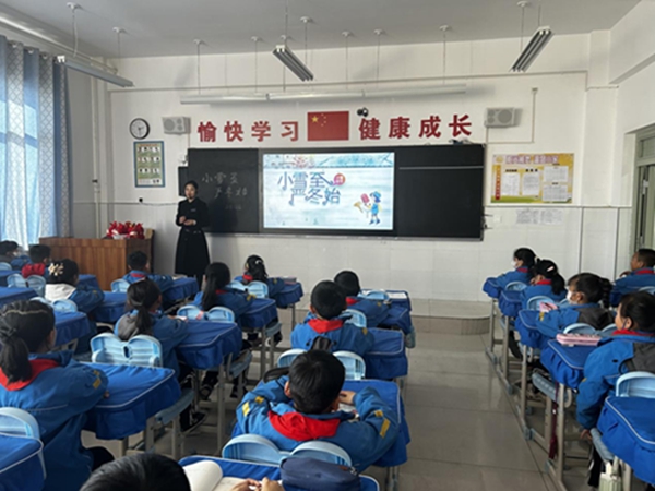 2023年11月22日下午,庆阳市博物馆“怡智课堂”走进庆阳市庆化学校三年级八班,为60名同学分享了一堂以“小雪至 严冬始”二十四节气分享课。
