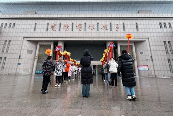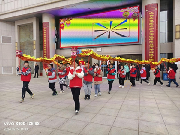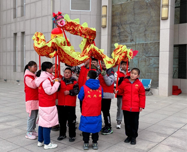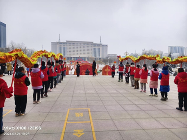 活动当天,在博物馆门前的社火现场,22个小朋友的舞龙队伍迈着有力的步伐,在铿锵的锣鼓声中表演,演员们个个精神抖擞,现场一派欢腾景象。尽管室外温度很低,演员们的热情却丝毫不减,在老师的指导下,一遍又一遍地演出,力争展现昂扬向上的精神面貌。