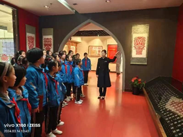 活动开始,讲解员带领同学们参观了庆阳市博物馆剪纸展厅,欣赏了剪纸大师们的精美作品,学习了各种纹样所代表的美好寓意,更加深入的了解家乡的非物质文化遗产。
