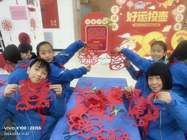 剪纸艺术是我国劳动人民热爱生活、热爱美的结晶,同学们通过动手体验不仅感受到剪纸艺术的魅力,也能在实际生活中去发现美、欣赏美、创造美。