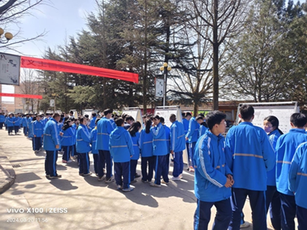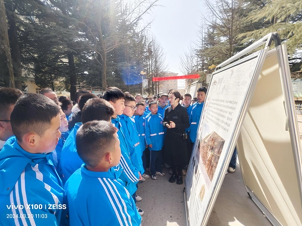 在学校广场,博物馆讲解员为驿马中学的1000余名师生讲解了30块展板的内容。按照不同班级,为同学们介绍博物馆馆藏文物和红色革命文物,让学生了解了庆阳历史文化和红色文化。通过“流动博物馆”四进活动,让基层学生们了解了庆阳历史、红色文化,激发了同学们热爱祖国和热爱家乡的情怀。
