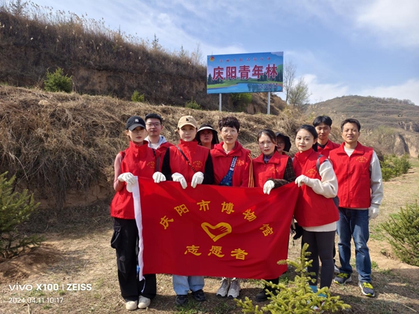 4月11日,庆阳市博物馆参加了由庆阳市团委发起的“‘植’此青绿、共‘树’未来”植树活动,庆阳市博物馆10名志愿者参加了活动。