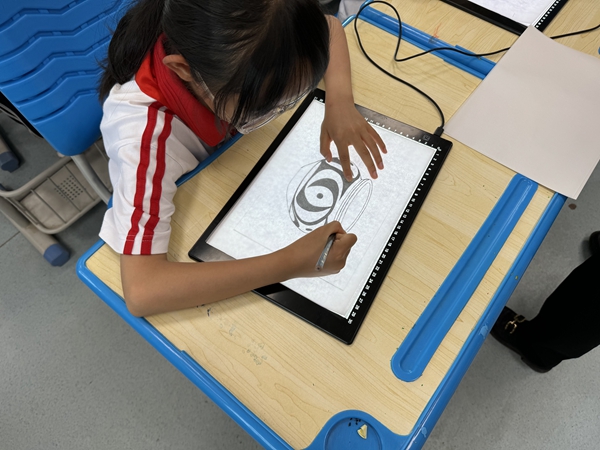 在手工绘画环节中,同学们在画板上用心描绘着庆阳市博物馆收藏的文物以及民俗文化的图案,感受着古人的智慧与创造力,同时也进一步领略到青铜文化的魅力。