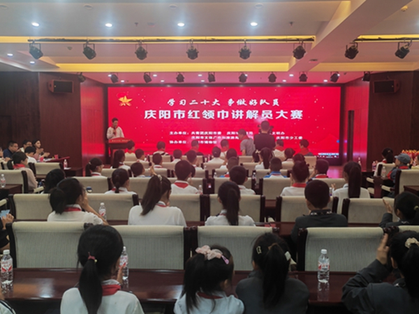 5月18 日,由团市委等多部门联合举办的庆阳市红领巾讲解员大赛(决赛)在市博物馆举行。此次大赛旨在贯彻党的二十大精神,落实习近平总书记关于少年儿童和少先队工作的重要论述及意见。经过各县区及市直学校少工委选拔推荐,22 名少先队员入围决赛。在现场,小讲解员们围绕主题,以庆阳“五张名片”内涵为核心,依托实践基地,用稚嫩的声音讲述红色以及庆阳的故事,他们举止优雅,讲解形式多样。